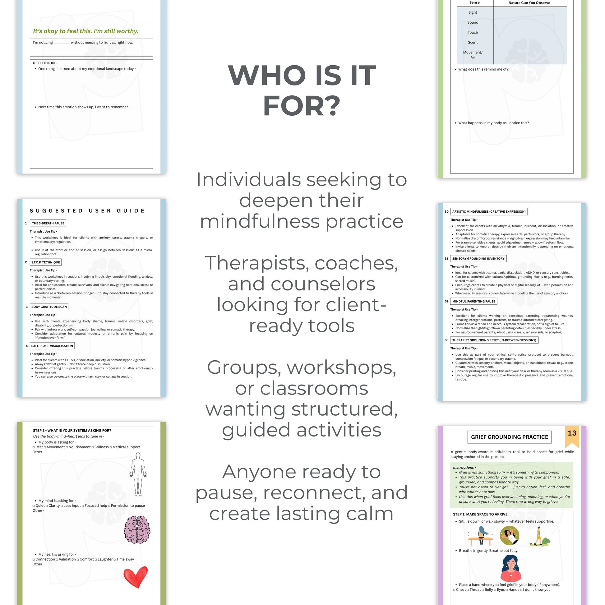 Whether you're looking to enhance your own mindfulness practice or seeking effective tools for your clients, this workbook is an invaluable asset. With its user-friendly design and comprehensive content, it’s perfect for anyone committed to personal growth and emotional well-being.