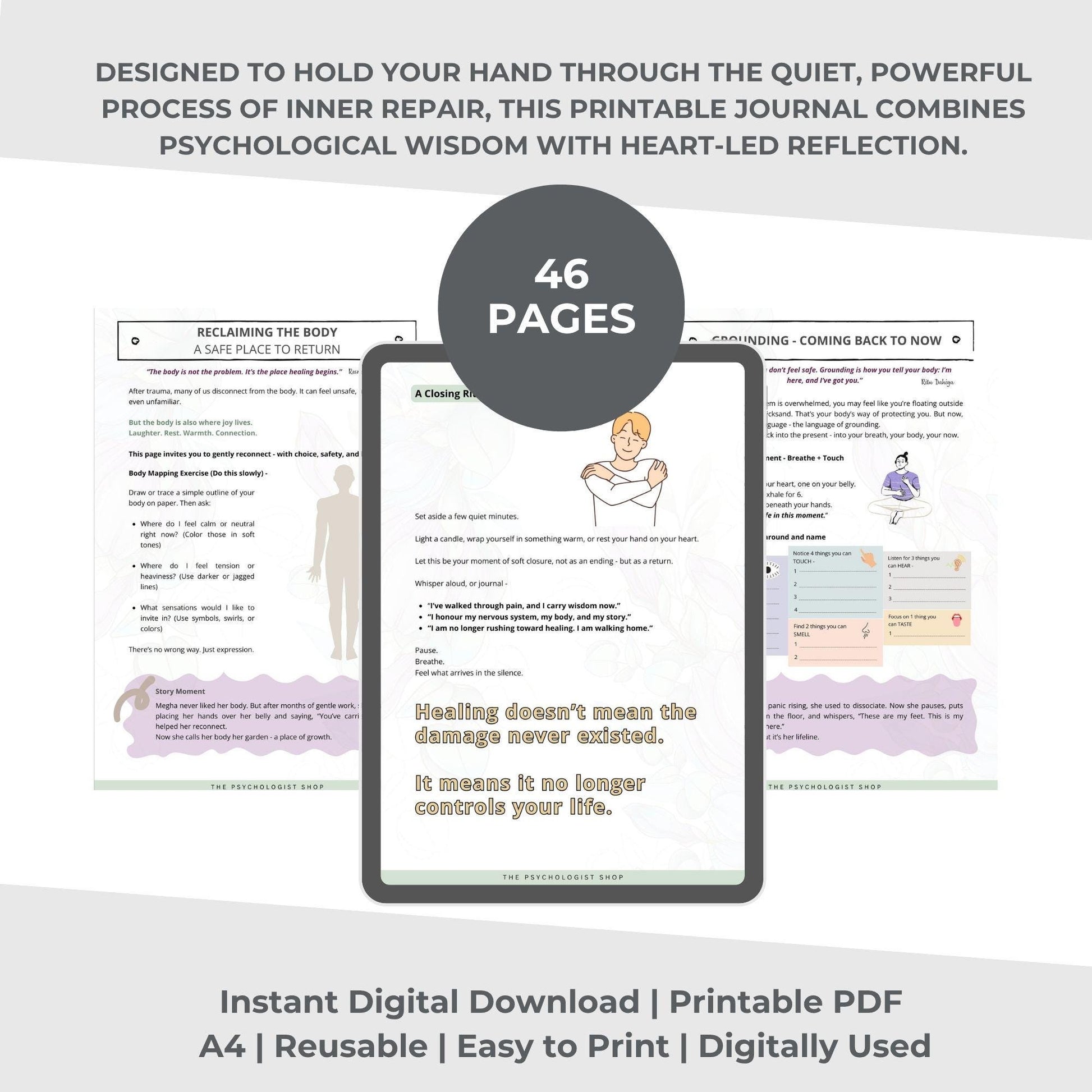 “You Are Not Broken” is a gentle, therapist-created printable trauma healing guide designed to help you reconnect with your inner self, release emotional wounds, and build a deeper sense of safety—from within.